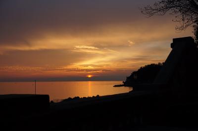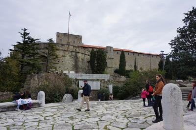 So nah an der Küste ist der Frühling schon deutlich weiter fortgeschritten, Kirschbäume blühen, sobald die Sonne aufgeht ist das Vogelgezwitscher so penetrant, dass man sich zweimal überlegt ob man das Fenster aufmacht (ich hab es nach 20Sekunden wieder zugemacht und das mit sechs Männern im Zimmer, die alle das Bier vom Vorabend ausgedünstet haben, das will schon was bedeuten). Aber alles der Reihe nach. Wir sind Samstagvormittag angekommen, dank der Lage von Ljubljana braucht man ja nirgendswo wirklich lang hin. Wir sind mit dem Zug bis Villa Opicina gefahren und von da mit der Tram weiter nach Triest rein. Ich hatte mir ganz fest vorgenommen auf dem Rückweg ein Bild von eben dieser zu machen, ratet mal welches Gefährt wir auf dem Rückweg nicht benutzt haben. Triest ist eine Hafenstadt, in der sich das wichtigste rund um den Hafen abspielt, so habe ich es zumindest erlebt. Unser Hostel war ein ganzes Stück außerhalb, nahe dem Schloss Miramare. Um ins Zentrum zu kommen konnte man etwa drei Kilometer am Meer entlanglaufen und dann einen Bus nehmen, oder, wenn man so begabt ist wie wir und keinen Shop findet, der Bustickets verkauft, auch noch die letzten drei bis vier Kilometer an der Straße weiterlaufen. Ist uns aber nur einmal passiert, ehrlich. Es lohnt sich auf jeden Fall einfach mal so ein wenig durch die Straßen von Triest zu laufen, überall sieht man sehr schöne Häuser, ich habe mich ein wenig an Wien erinnert gefühlt. Da uns der Weg ins Zentrum und die Essenssuche am Samstag doch ganz schön viel Zeit gekostet hat und Betigül nicht direkt begeistert war von meinem Vorschlag am Sonntag wandern zu gehen haben wir die detailreichere Stadtbesichtigung auf Sonntag vertagt und den Tag gemütlich mit einem Eis am Hafen ausklingen lassen und uns später den Sonnenuntergang von der Terrasse des Hostels aus angesehen.